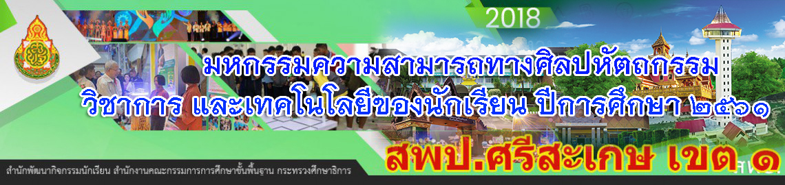 *** ให้ตัวแทน สพป.ศก.1 แข่งขันระดับชาติ ที่บุรีรัมย์ << ตรวจสอบรายชื่อตัวแทนแข่งขันระดับชาติ >> หากต้องการแก้ไข เพิ่มเติม รายชื่อ นร./ครู ให้ใช้รหัส รร. เดิม เข้าระบบที่ << เข้าระบบ >> เข้าเมนู ลงทะเบียนแข่งขัน แก้ไขได้ถึง 23 พ.ย.61 *** |